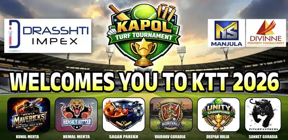 મુંબઈ, બોરીવલી: કાલે શનિવાર, ૧૮.૦૪.૨૦૨૬ ના રોજ ટર્ફ ગજવવા આપણા યંગ સ્ટાર્સ ઉતરશે મેદાનમાં! KTT 2026 ટૂર્નામેન્ટનું એક્સાઈટિંગ ઓક્શન (Auction) પૂરું થઈ ગયું છે! બધી જ ટીમો હવે એકદમ સેટ છે . તમામ ટીમો અને તેમના સુકાનીઓની સત્તાવાર જાહેરાત થઈ ચૂકી છે. આ વખતે મુકાબલો ખૂબ જ રસાકસીભર્યો અને રોમાંચક રહેવાનો છે. દરેક ટીમ જીતના મક્કમ ઈરાદા સાથે મેદાનમાં ઉતરશે અને કોણ બાજી મારશે તેના પર સૌની નજર રહેશે!